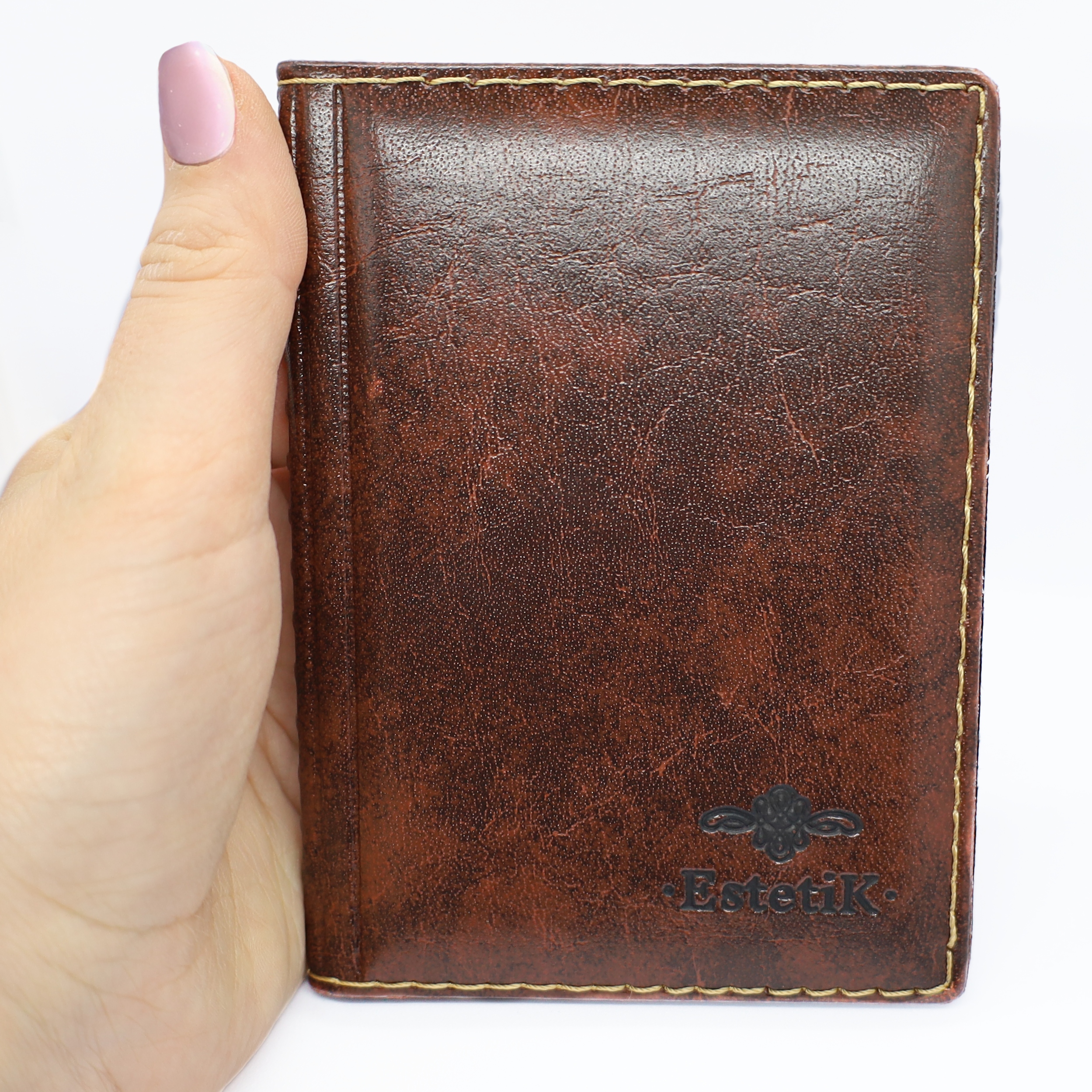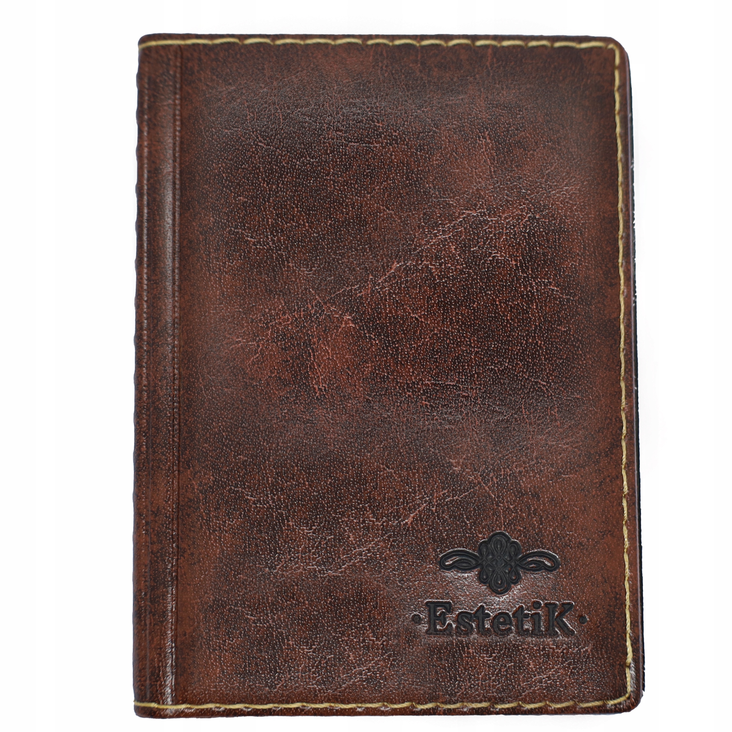 Oprawka na dokumenty z najwyższej jakości skóry ekologicznej w kolorze brązowym, obszyta.