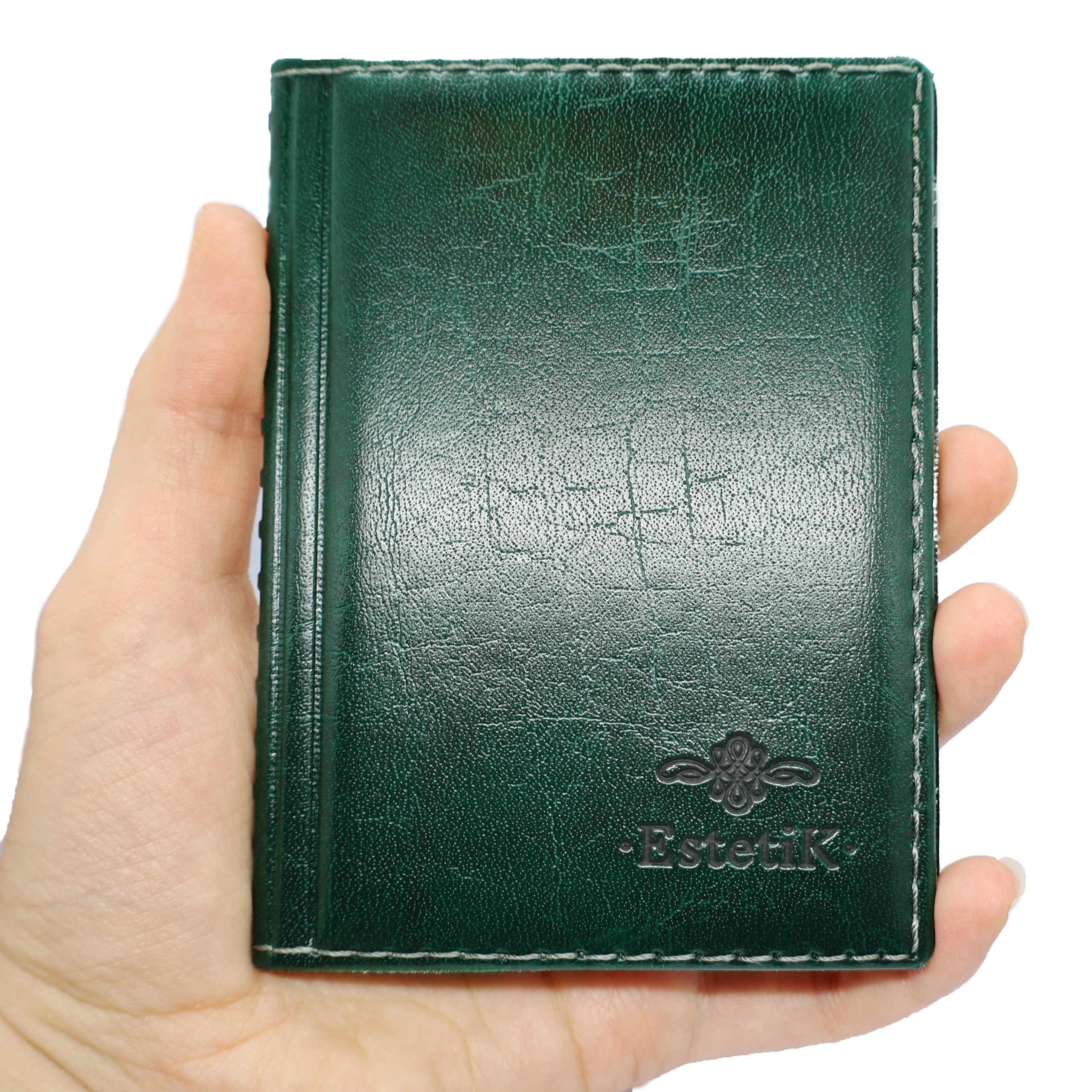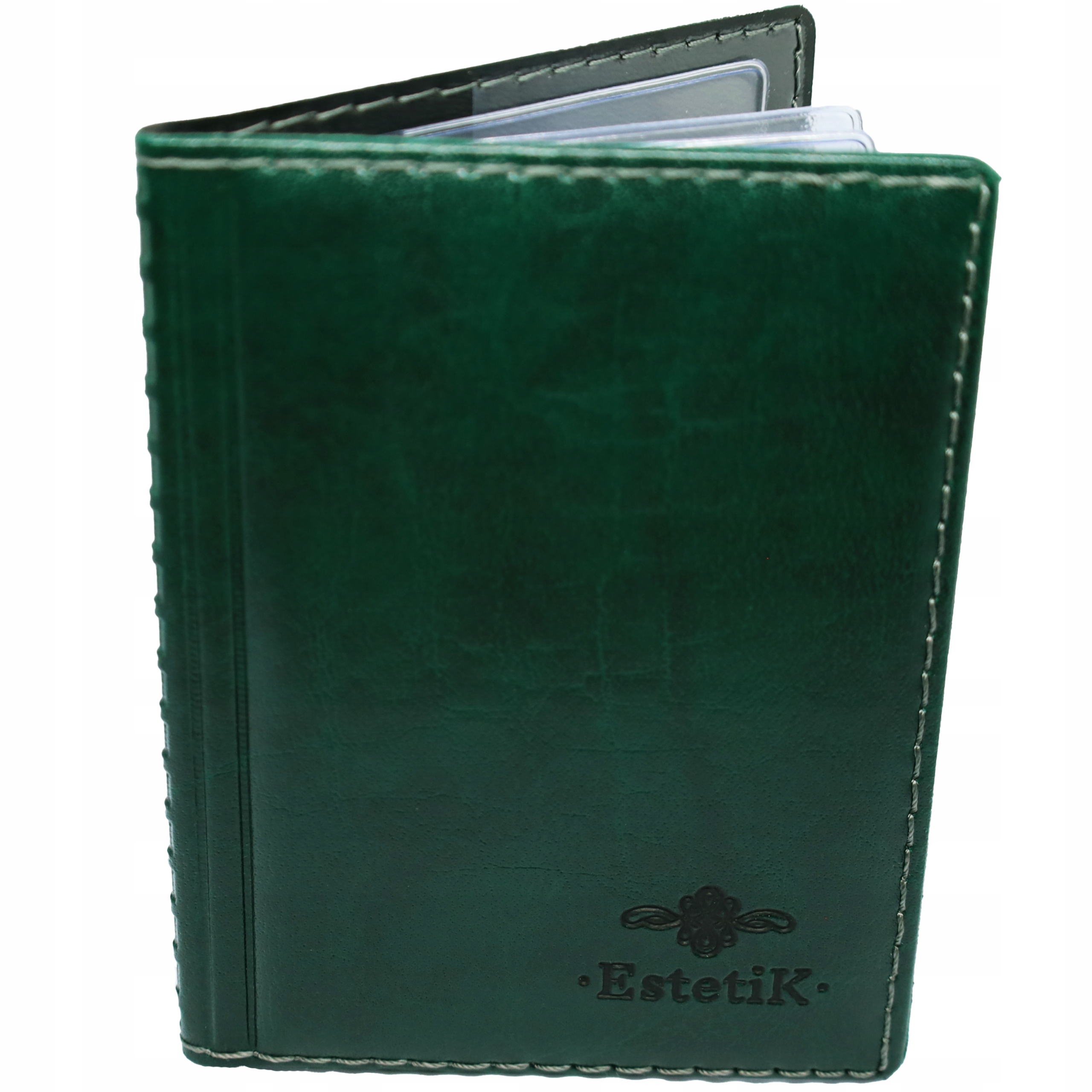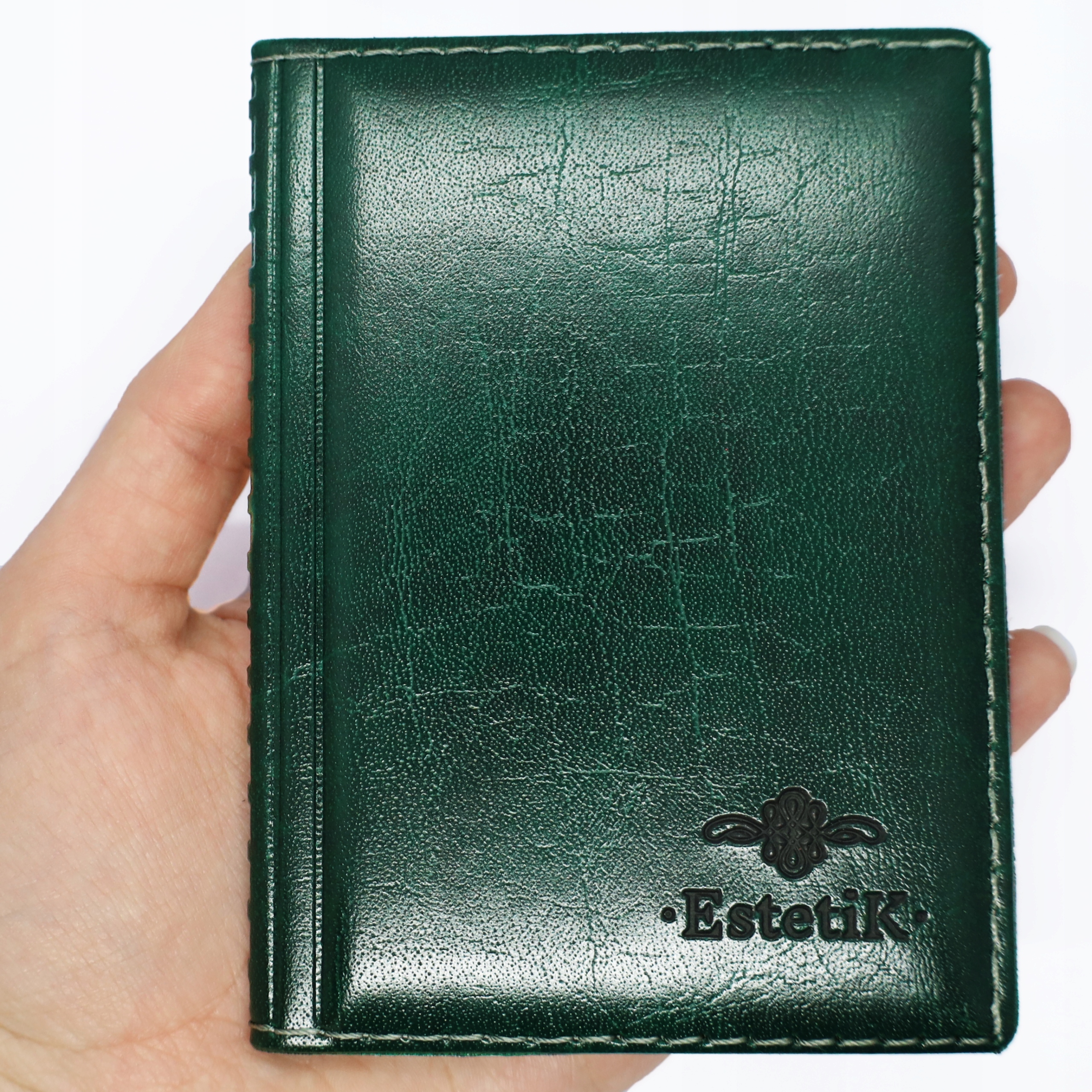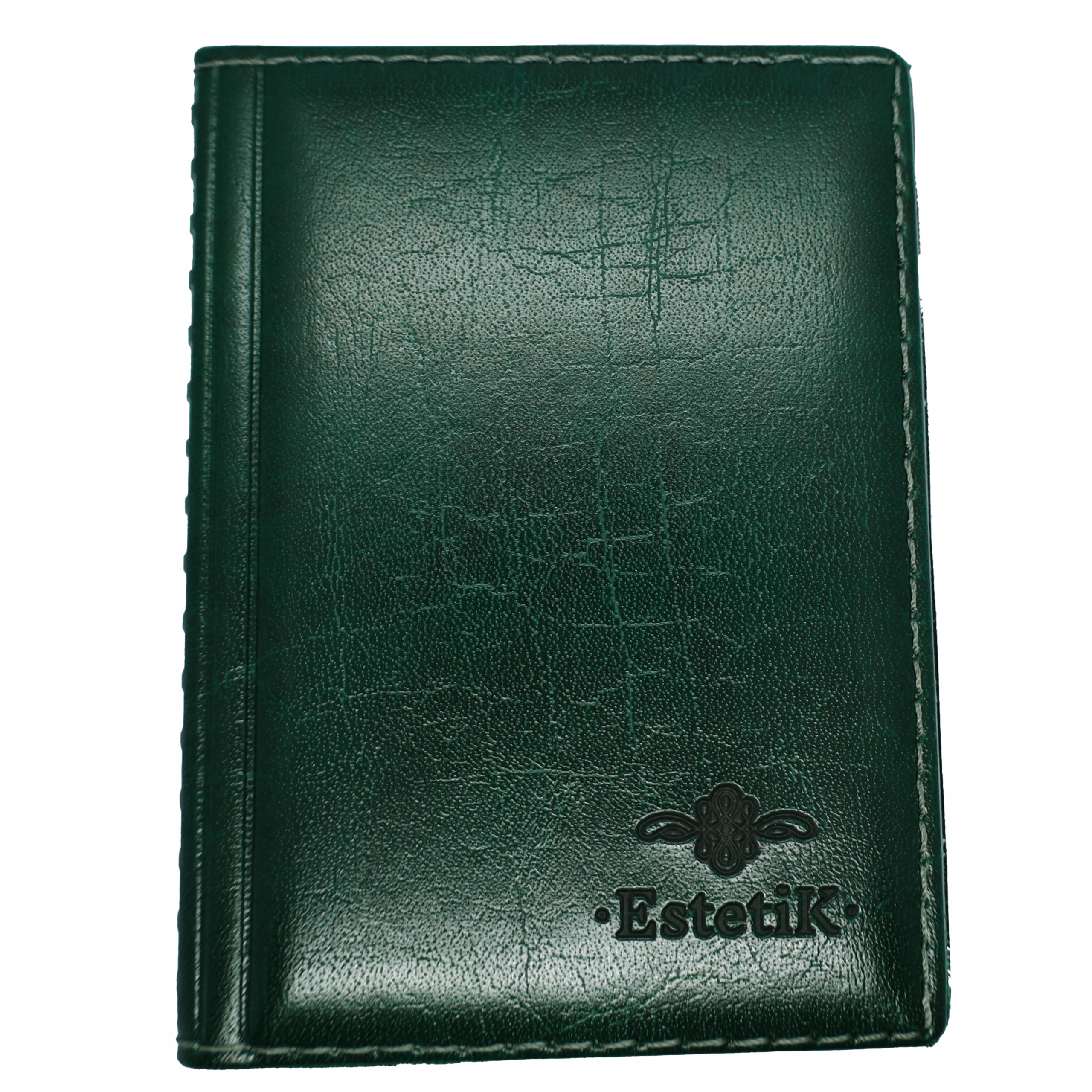 Oprawka na dokumenty z najwyższej jakości skóry ekologicznej w kolorze ciemnej zieleni, obszyta.