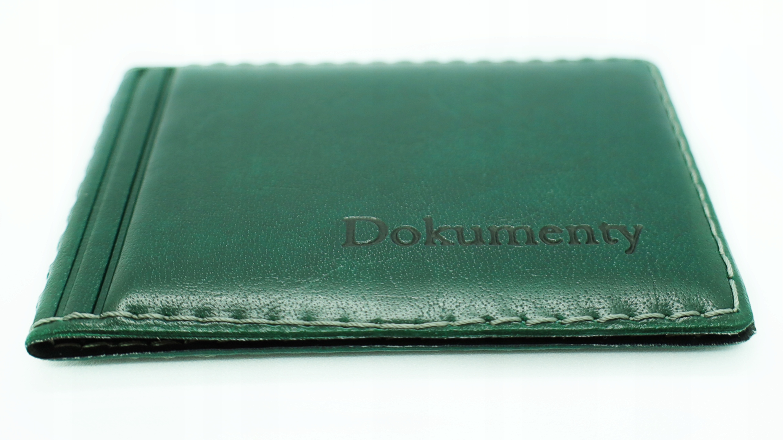 Piękne, wysokiej jakości zielone etui z wytłoczonym napisem „Dokumenty”, bardzo kompaktowe i ergonomiczne.