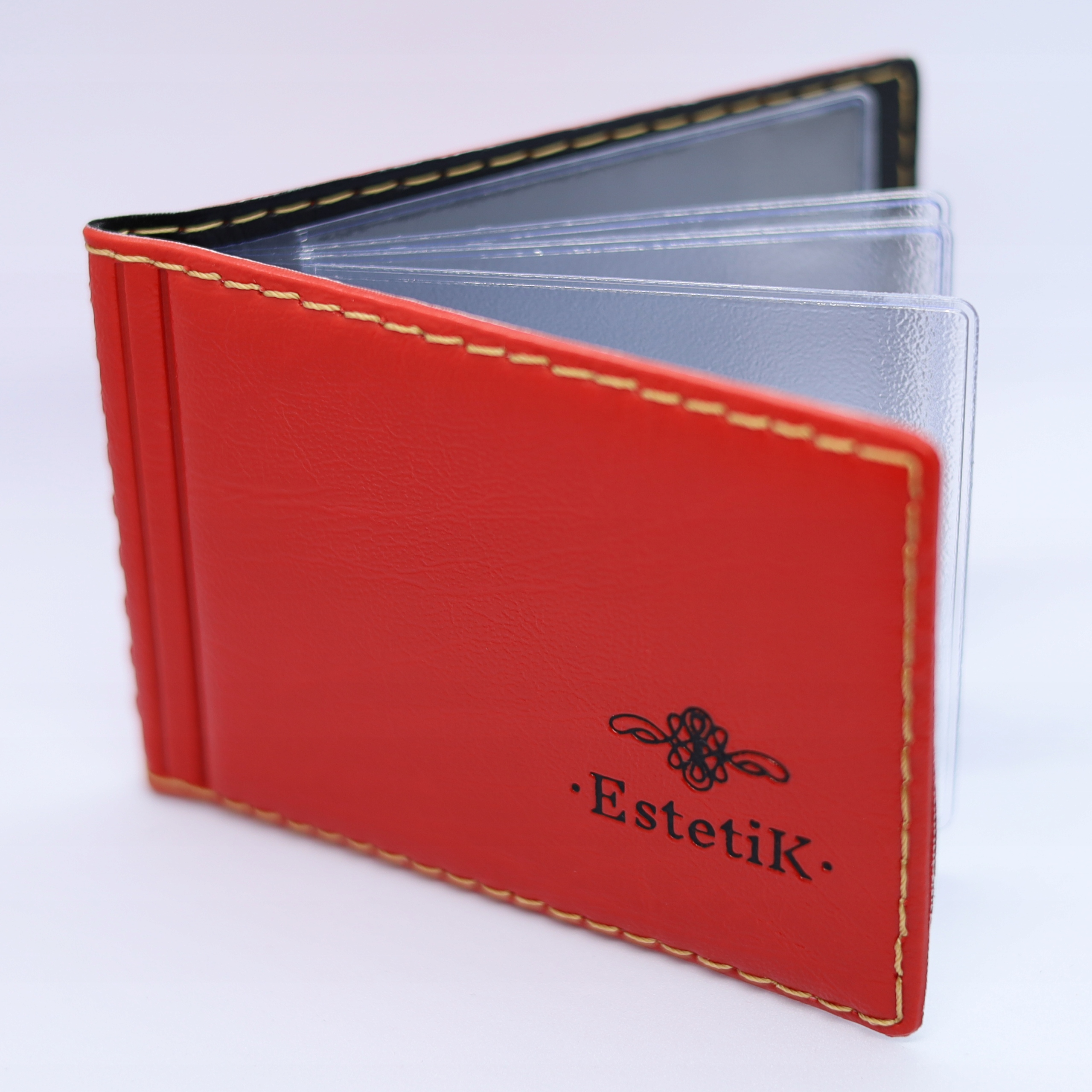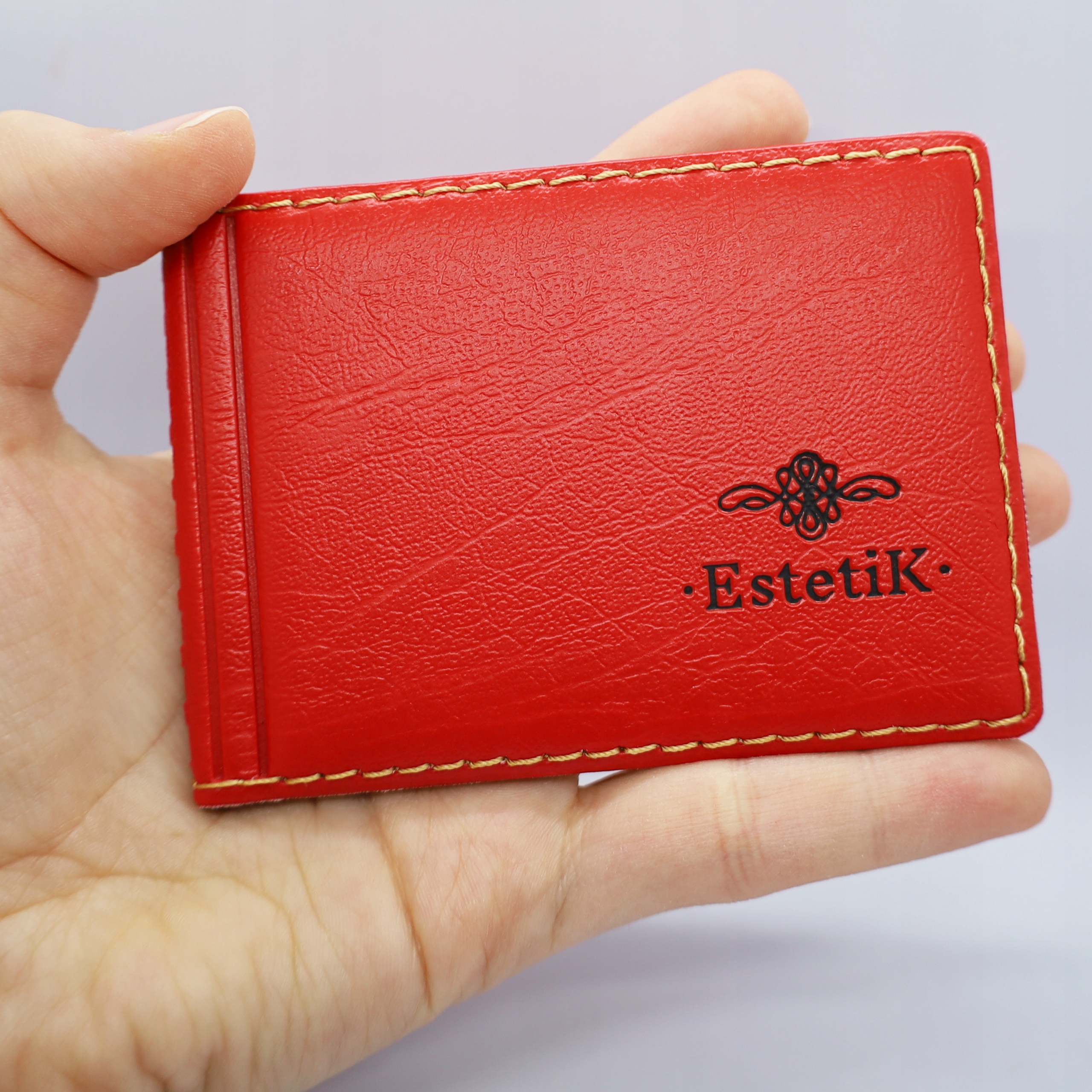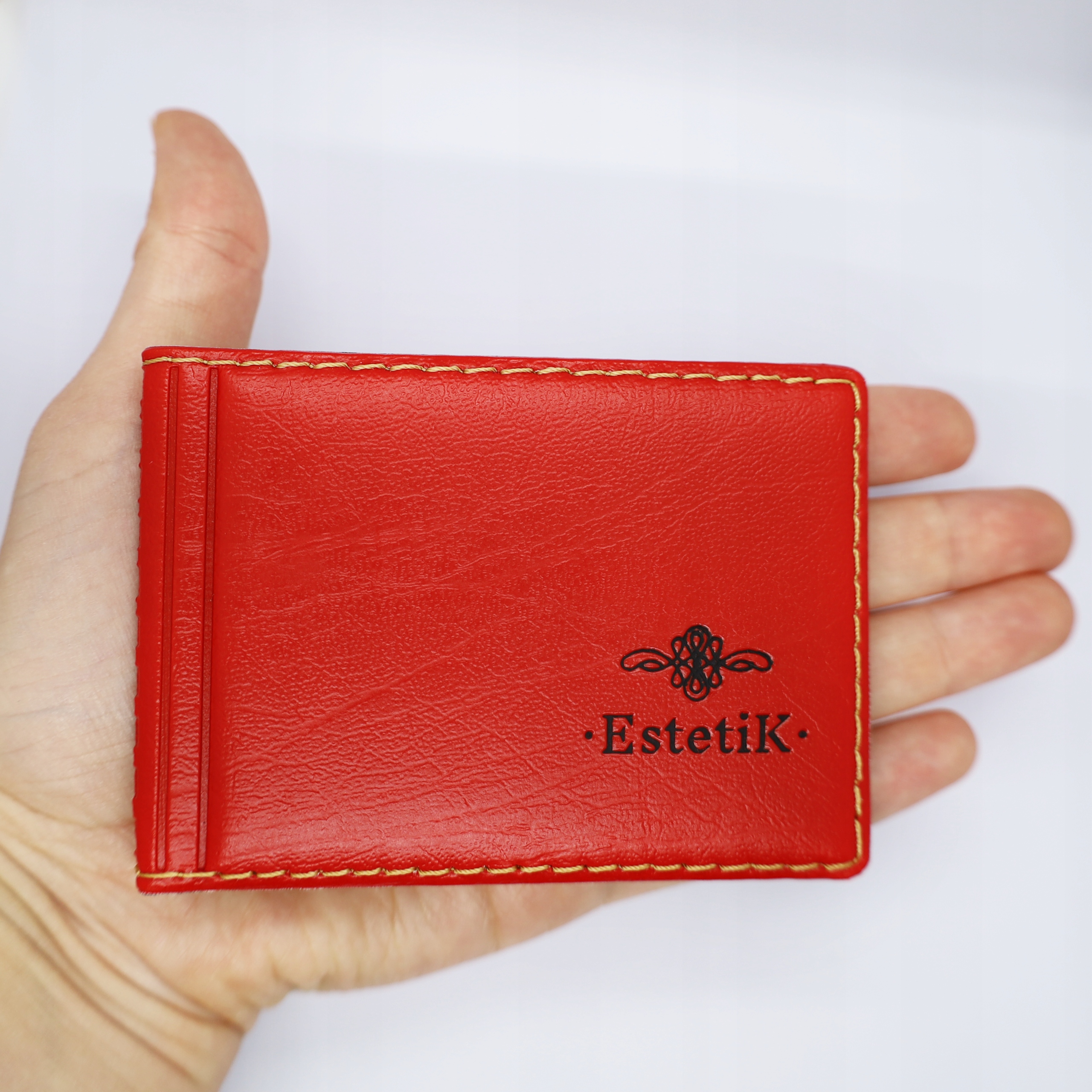 Piękne, wysokiej jakości czerwone etui z wytłoczonym złotym napisem „Dokumenty”, bardzo kompaktowe i ergonomiczne.
