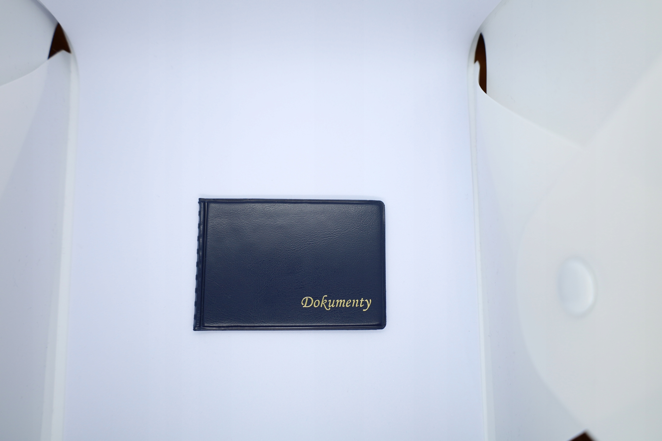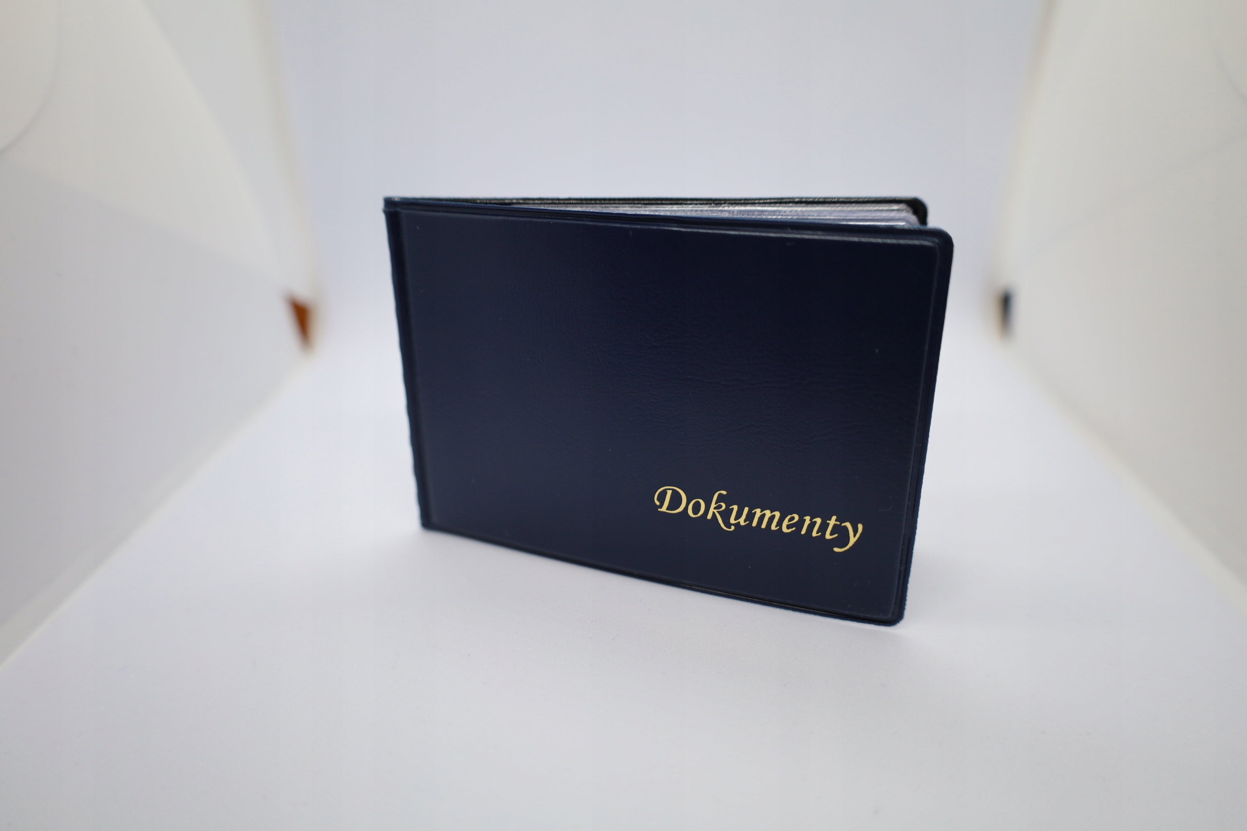 Oprawka na dokumenty z najwyższej jakości skóry ekologicznej w kolorze ciemnoniebieskim.