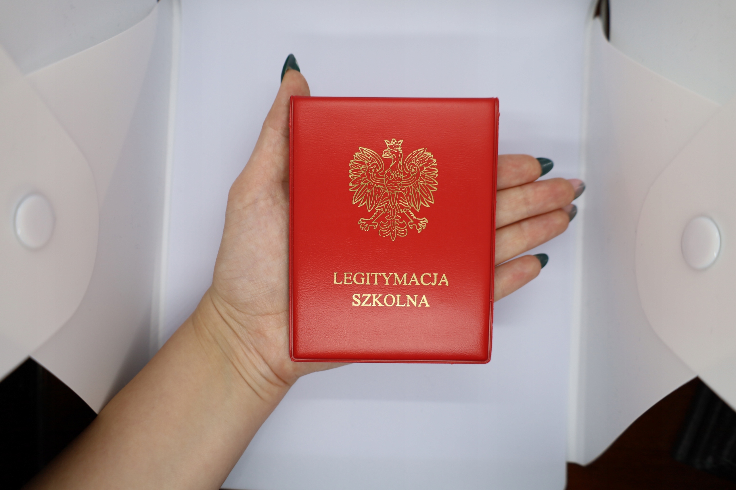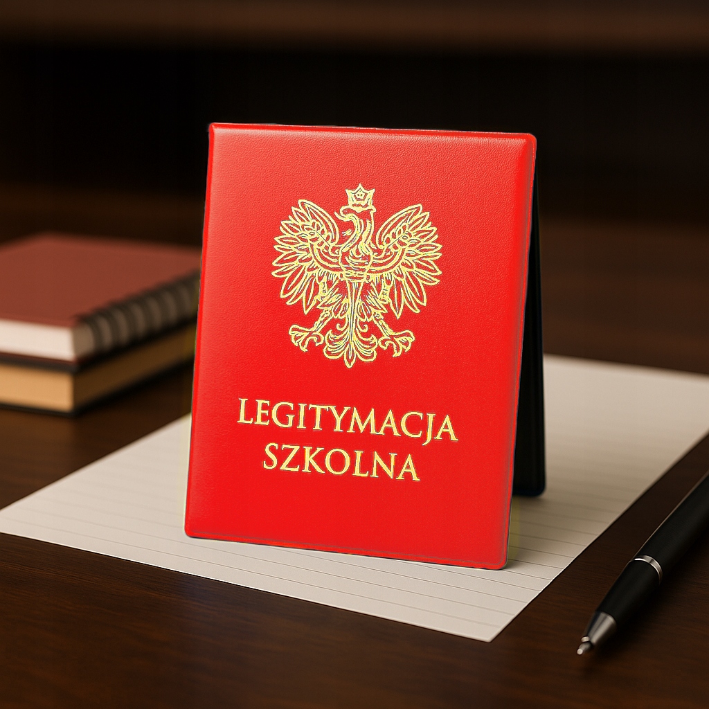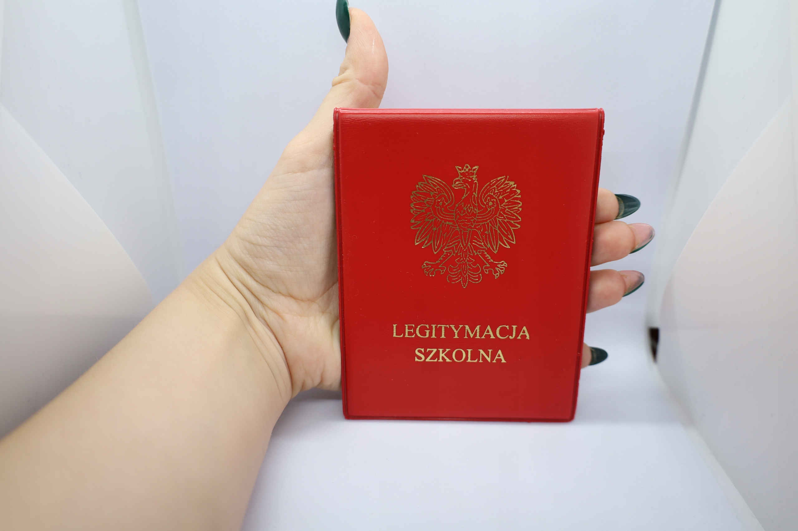 Oprawka na Legitymację szkolną z najwyższej jakości skóry ekologicznej w kolorze czerwonym.
