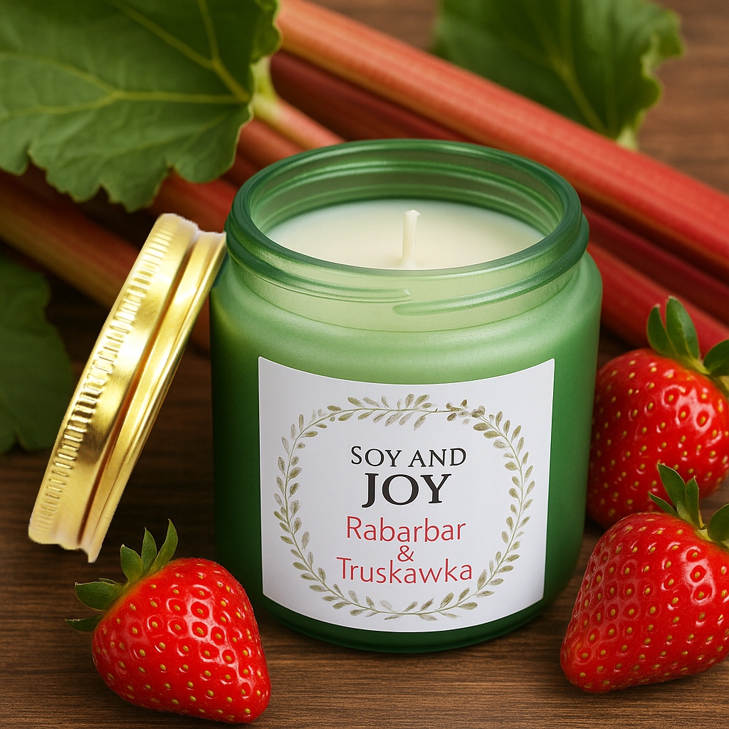 Świeczka ma zapach rabarbaru i truskawek, który pobudzi Twoje zmysły i przywoła najmilsze wspomnienia!