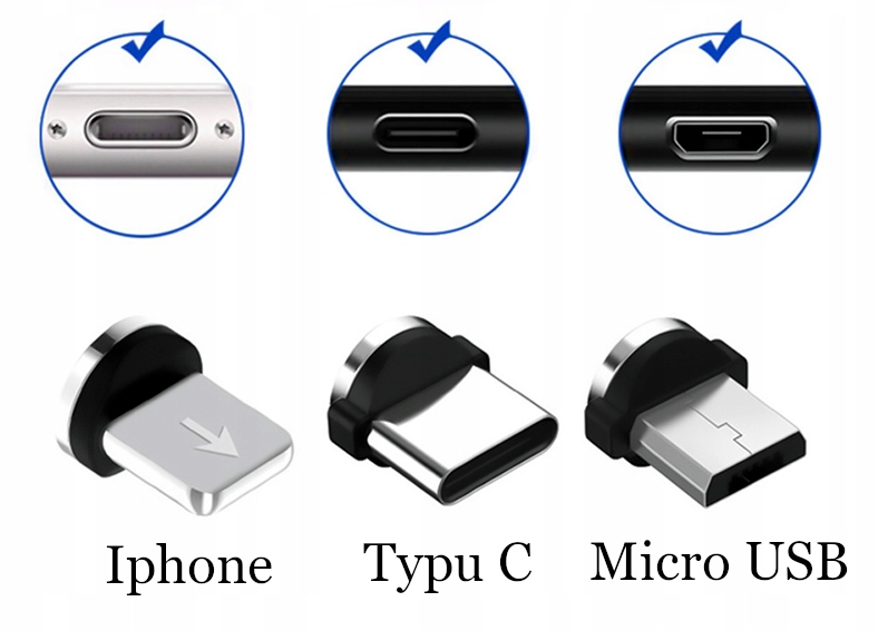 Bardzo mocna i idealnie dopasowana końcówka magnetyczna typu Micro USB do kabli magnetycznych.