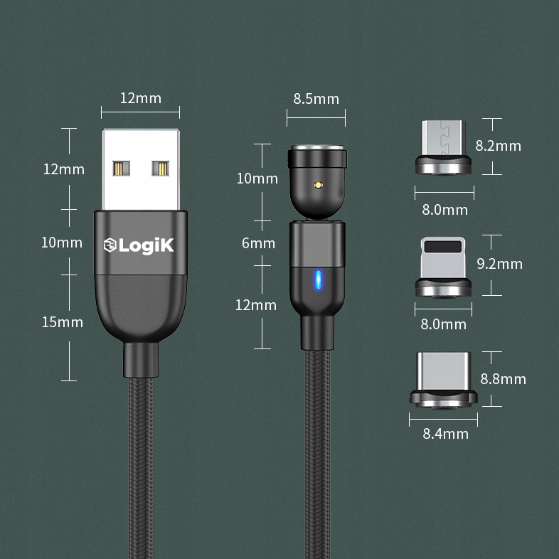 Kabel magnetyczny (3 metry) sprawdzonej marki LogiK, to wszystko czego potrzebujesz od kabla ładującego w jednym:
