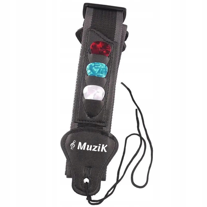 Model ten, posiada dłuższą końcówkę, która pełni funkcję uchwytu na kostki do gitary. Dzięki temu nie musimy inwestować w dodatkowe pojemniki na kostki. Posiada też sznurek mocujący do gitar bez uchwytu.